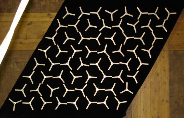 A large-scale hexagonal grid of rotating units demonstrates a number of phenomena, such as pattern formation, magnetic forces and the trajectories within a dynamical system. Magnetic forces in each of the rotating arms cause a chain reaction of movement affecting neighbor units and moving across the grid. Our physical model gives participants the means of a direct and intuitive interaction with a simple dynamic system, combined with an interesting aesthetic experience. Participants are invited to interact with the sculpture by turning the units, which produces movements along unpredictable lines. A projection on the wall shows the spreading of the movement in realtime, through the application of a motion detection filter a video feed that is taken of the installation from above.