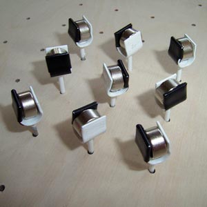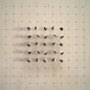 A simple two-dimensional model of freely rotating magnets on fixed positions was setup. The experimental model setup consists of a board with holes along a 2.5×2.5 cm grid. Cylindrical permanent magnets were put into little holders on needles and were able to rotate freely in their holes. We used magnets made of NdFeB N35, with a Ni-Cu-Ni surface, a maximal magnetic energy-density of 263-287 kJ/m², the ability to lift up to 3.5 kg and a size of 1 cm x 0.5 cm (The magnets were purchased online at powermagnetshop.de).