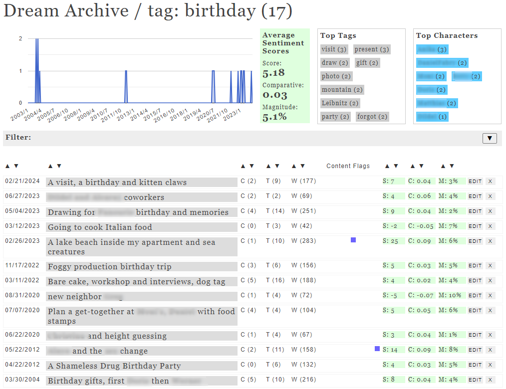 But being able to sort my dreams by those sentiment scores is definitely an interesting way to browse through old dreams.