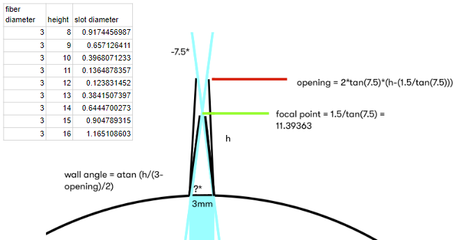 There is a sweet spot where the slot is the perfect focal point, but I didn't trust my 3d-printer with that precision, so I went with a slightly higher shaft length.