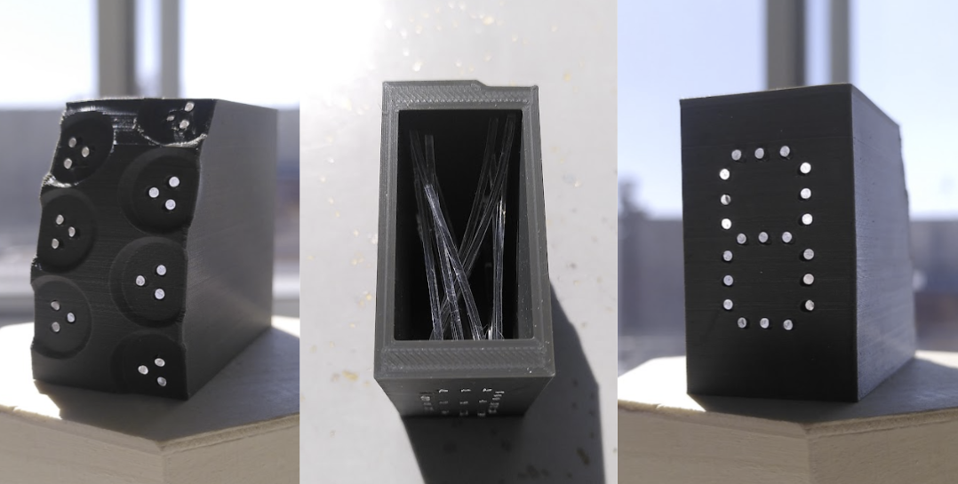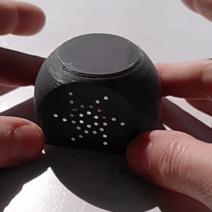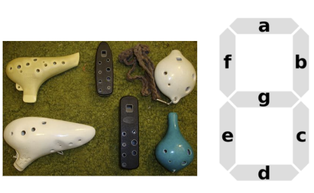 It is quite natural to cover and uncover the light input dots with your fingers, using them like buttons. Inspired by ocarina and similar handheld small instruments, I pushed this idea further with a design that's basically a manual 7-segment light display.