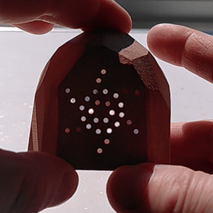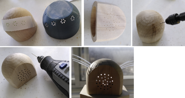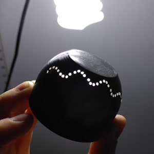 Besides the full sphere top, the shape cut out of wood is the same as those of the 3d-printed sculptures. I also decided to replicate a light-dot pattern, to have a direct comparison.