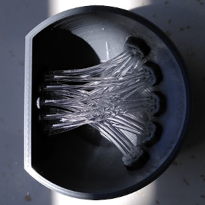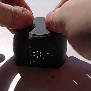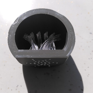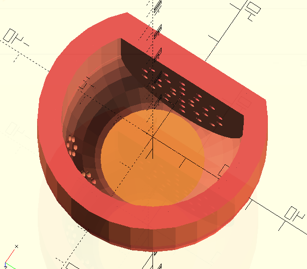 Using OpenSCAD to design the 3D-shapes, it was easy to experiment with different geometric designs by building them with code, and then being able to regenerate files with small parameter changes. For example, I settled on a certain wall thickness that would give the fibers a solid hold (they are just press-fit into the 3d-printed openings). And I tried to group the sun input points tightly together, so they are easily covered by fingertips.