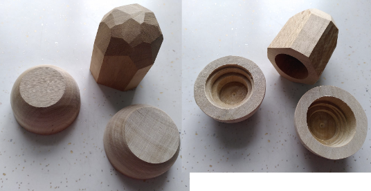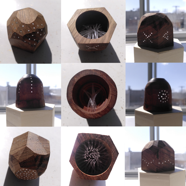 The plan was always to maybe make these objects out of a more natural material than 3d-printed plastic. I went looking for off-the-shelf hollow wooden objects (salt jars? diy matryoshka dolls?) but none of them fit my requirements. I realized I would have to make them myself.