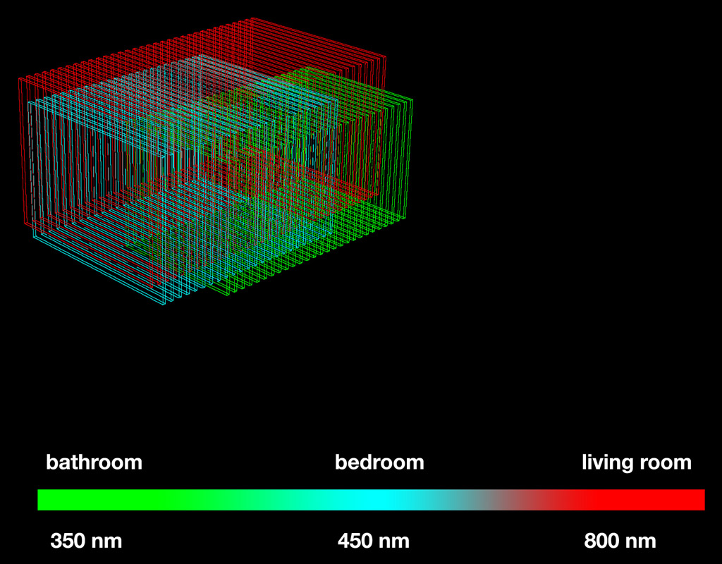 Ghost flat is a project of living in unknown dimensions. The room do not take shape in the spatial dimensions, but in specific fraction of the electromagnetic spectrum.