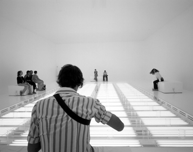 He created the Hormonorium for the 2002 Venice Architecture Biennale. The space stimulates physical reactions in humans similar to those experienced on a mountain top of about 3000 meter altitude. A white room is illuminated with a floor of light tubes, generating a very intense light between 5000 to 10000 lux. The white light with UV rays stimulates the reduction of melatonin in the human body, which causes a decrease in fatigue, a probable increase in sexual desire, and regulation of our moods. The quantity of oxygen in the room is reduced from 21 to 14.5 percent, which also corresponds to levels found on mountain tops. This can lead to altered states of consciousness. Through the production of endomorphine a slight euphoria can be experienced. A slight hypoxia - body deprived of adequate oxygen supply - can manifest itself through confusion, disorientation or bizarre behavior.