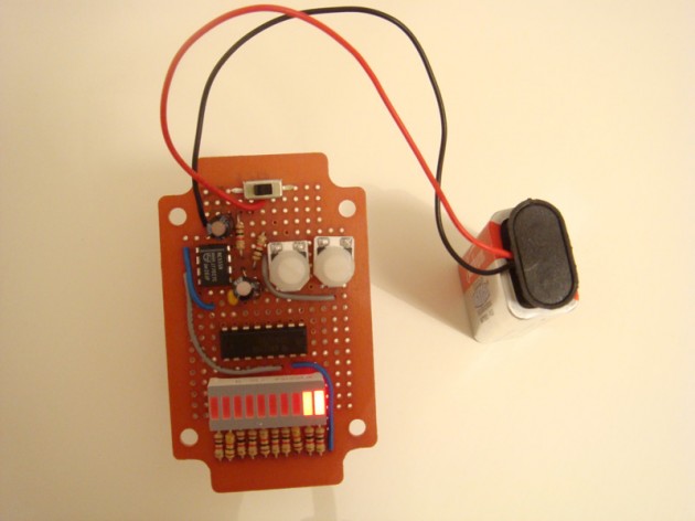 Part 2! Such a good feeling if a freshly soldered circuit behaves exactly how it should, without any need for debugging! The 555-timer LED chaser clock runs on a 9V battery (calculated lifetime of about 15 hours ... let's see). You can use it as a visual metronome and fine-tune the frequency to match your favorite beat!