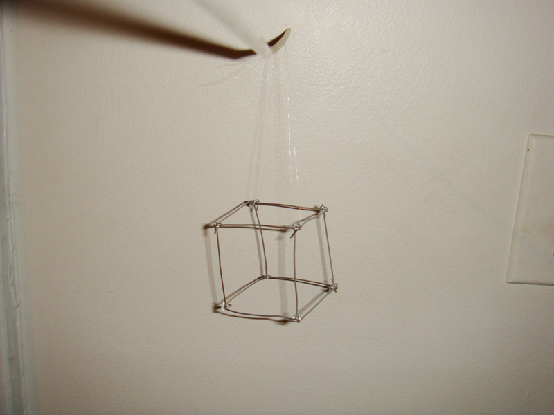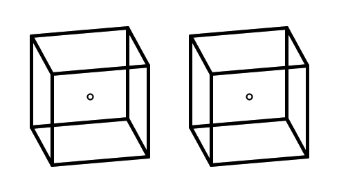 This very-imperfect wire cube is for testing the optical Necker-cube illusion on a 3D model. Blurry eye vision and not-exact geometries help with achieving the effect, that let's you flip between two geometric realities in your head.