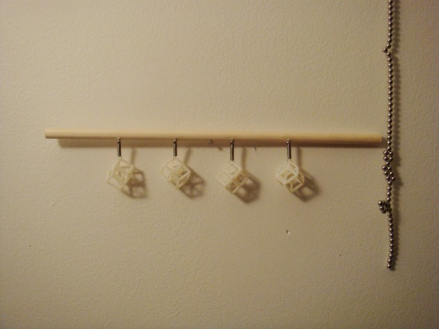 Lining up four 3d-printed hypercubes, each one ready to bounce on its spring.