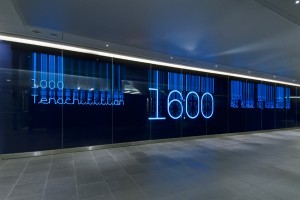 A 22m long electroluminescent wall at Heathrow Terminal 5 - displaying a world clock - created using an custom-made modular text display system. Troika developed and patented a new typology of electroluminescent displays that is less than half a millimeter thin and relies on a custom designed segmented typeface.
